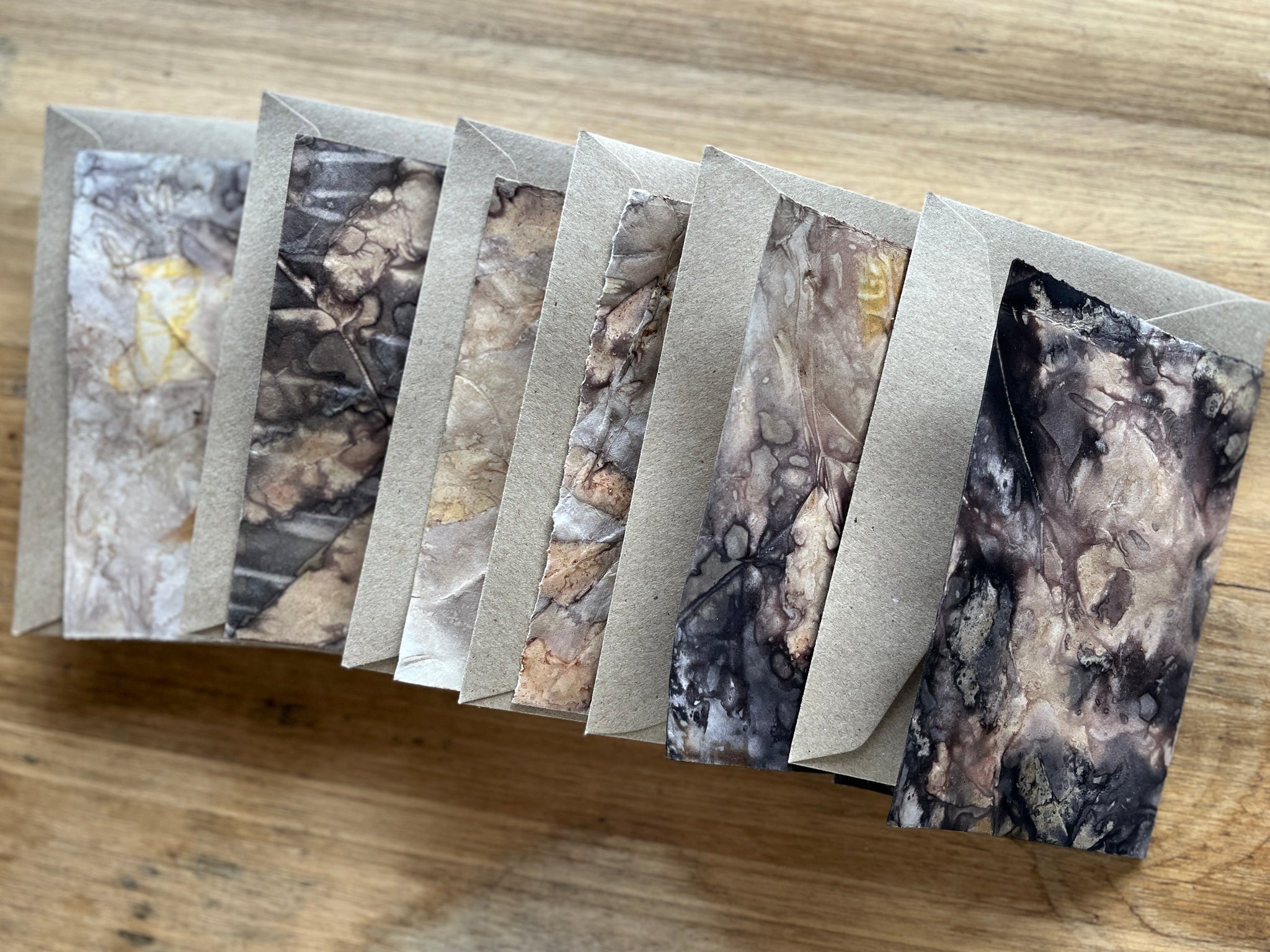 -beautiful eco printed textures and details feature in this series of handstitched greeting cards