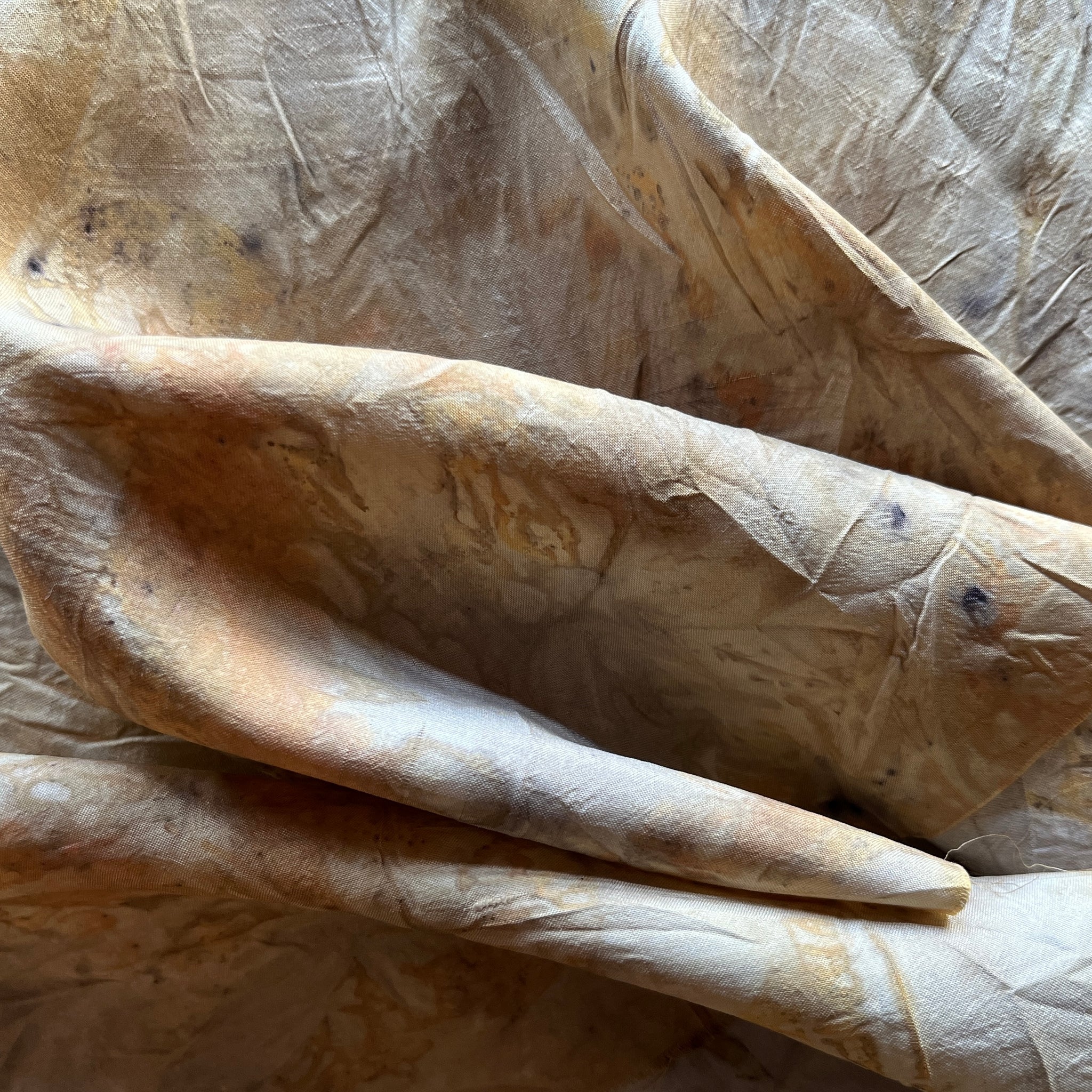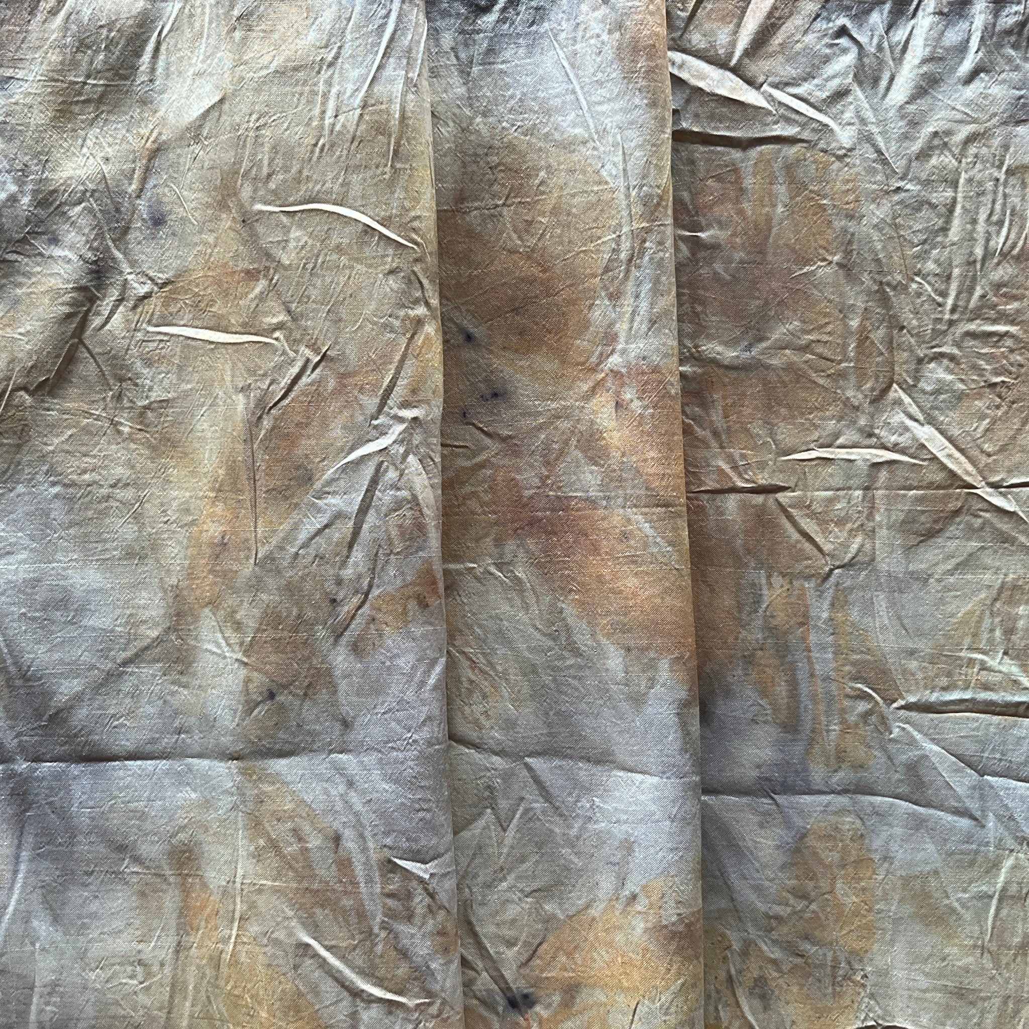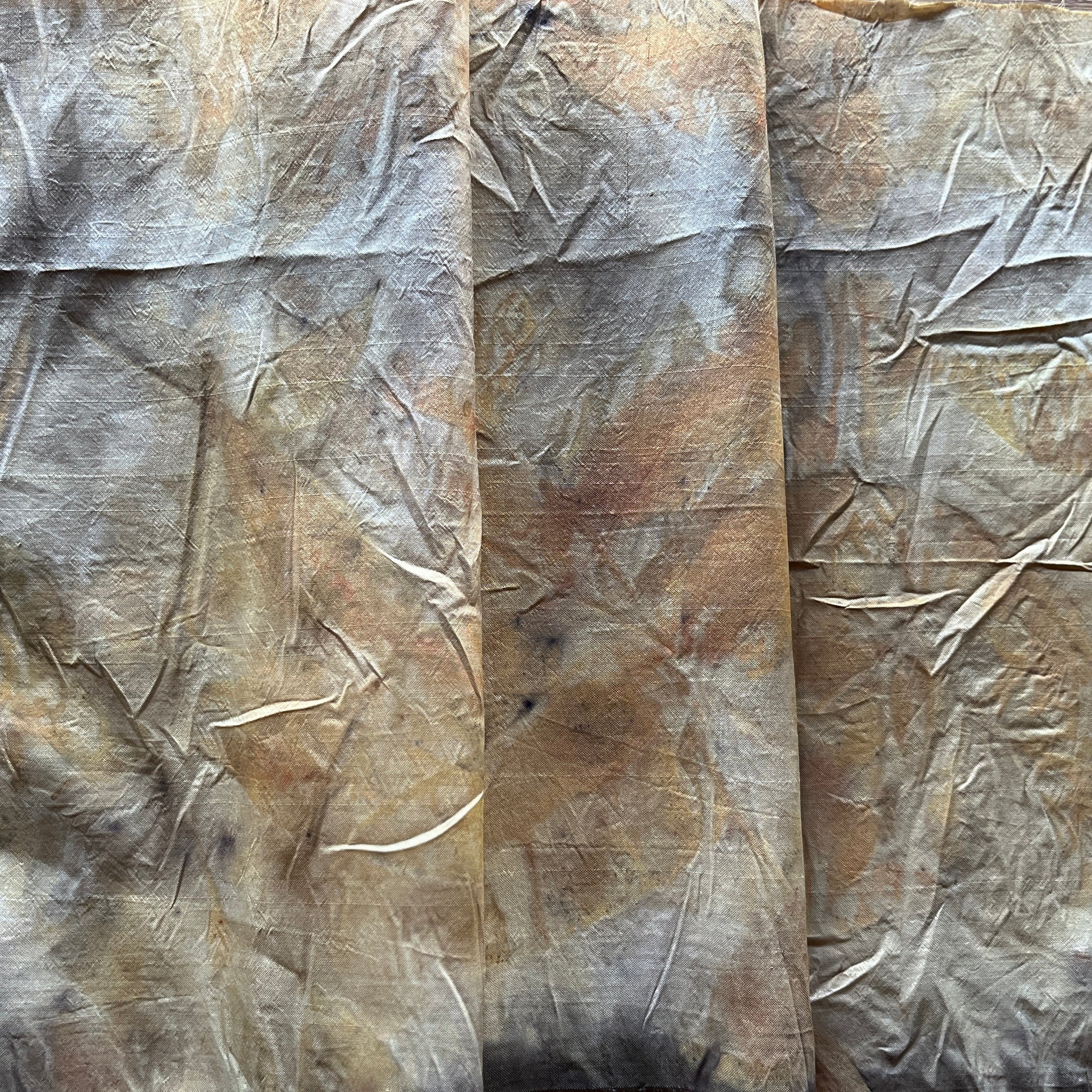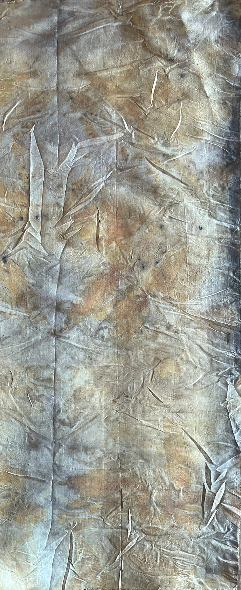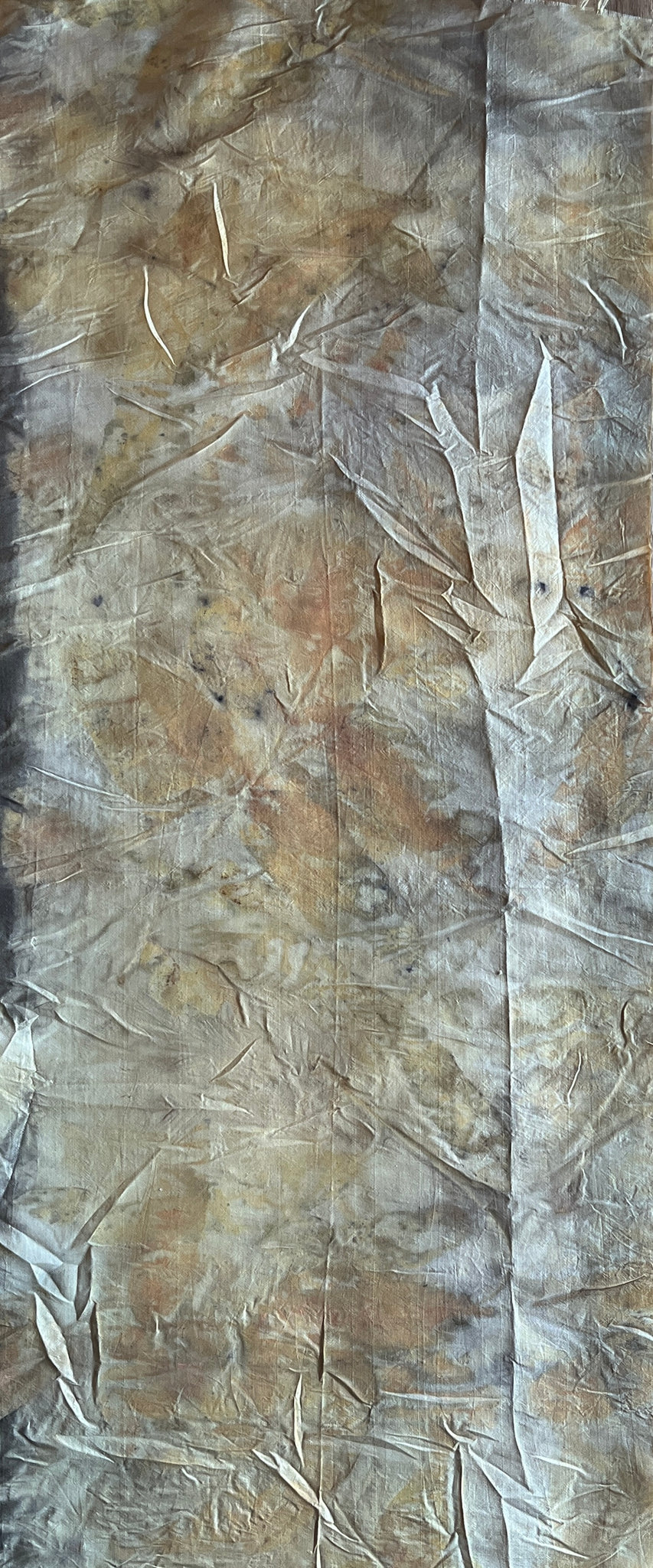 -ecoprinted with eucalyptus leaves foraged on our property in northeastern Tasmania, plus onion skins and copper pipe (natural alum mordant)